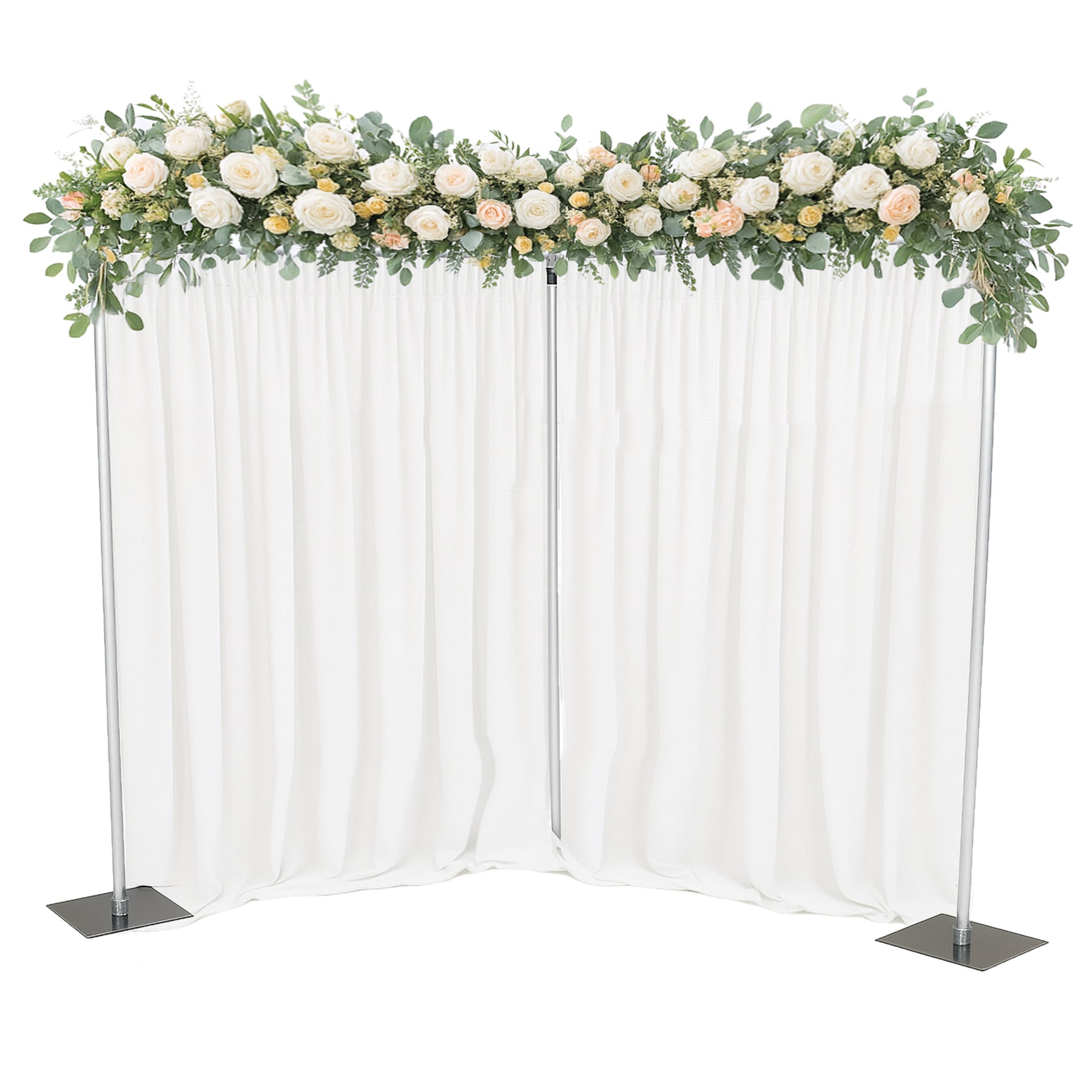 A must-have accessory for any wedding and event planner. This adapter allows endless possibilities for your backdrop setup. By attaching the adapter you can then add another cross bar to your backdrop stand set up and create layering, texture and creativity!