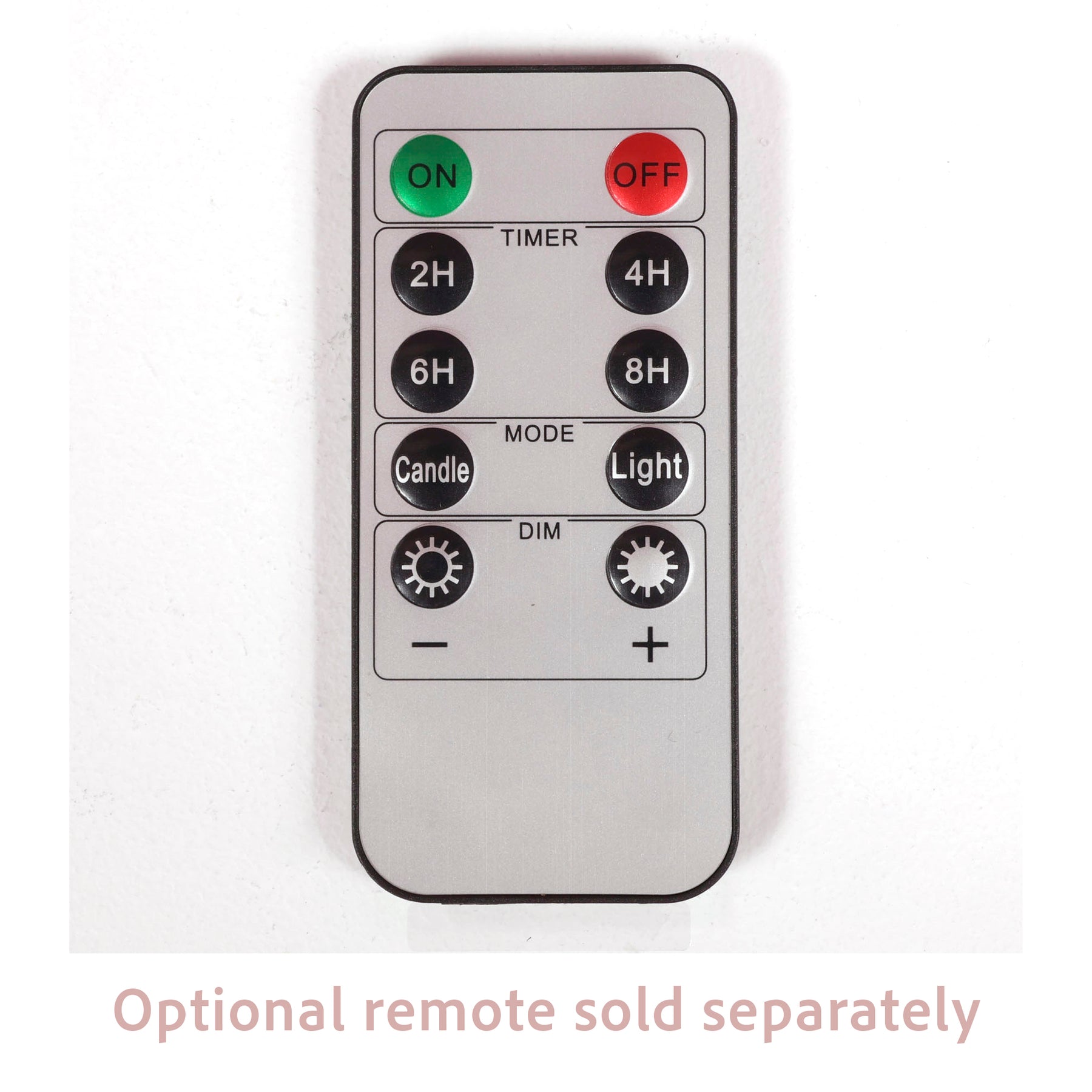 Combine with our Remote - LED Flameless Taper Candle (sold separately) to create a realistic flicker to mimic the light of a real candle. It can also contains on/off, dimming, and timer settings.
