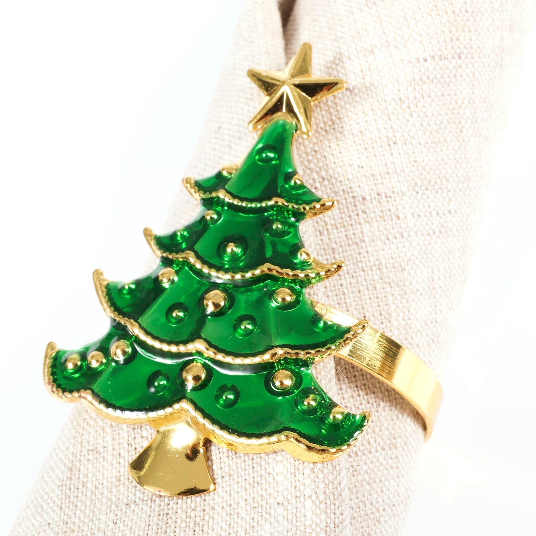 Bring classic holiday charm to your table with these Christmas Tree Napkin Rings. Featuring a beautifully detailed green Christmas tree adorned with golden accents and topped with a shining star, these rings add the perfect festive touch to your holiday dining.
