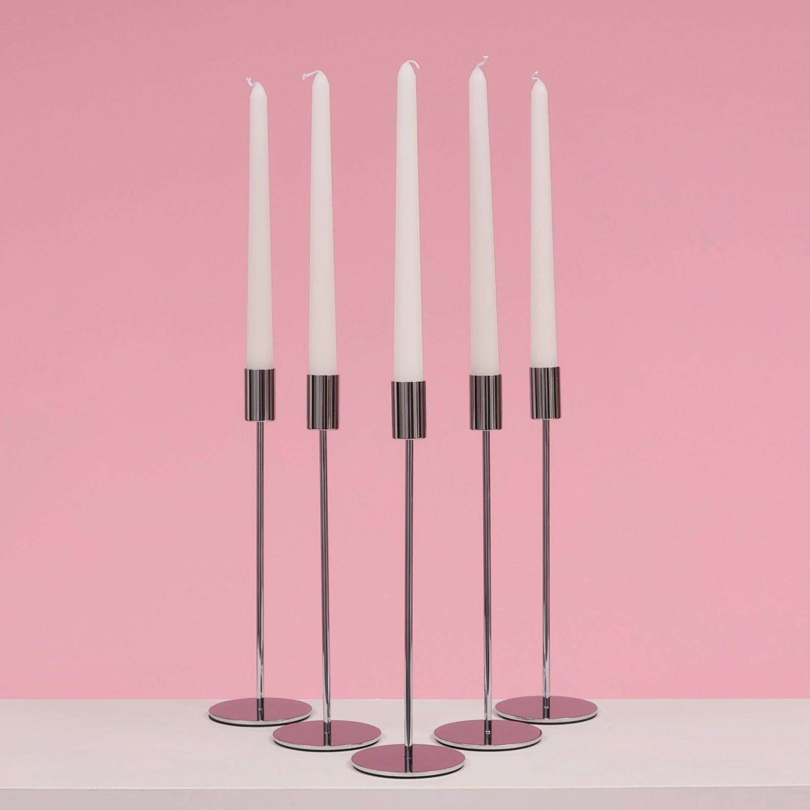 Taper Candle Holders Modern Straight Style - Silver (28cm)