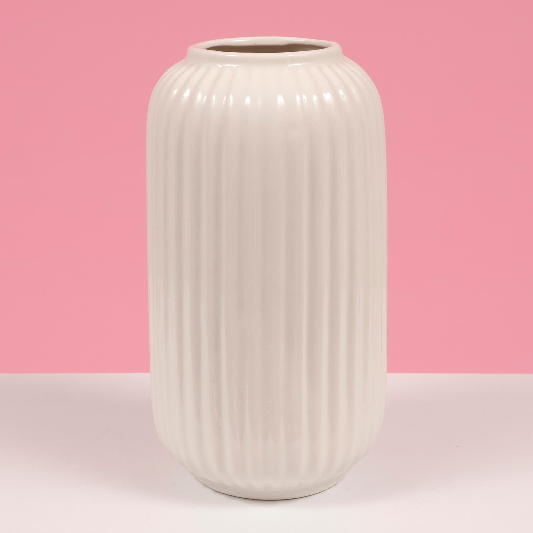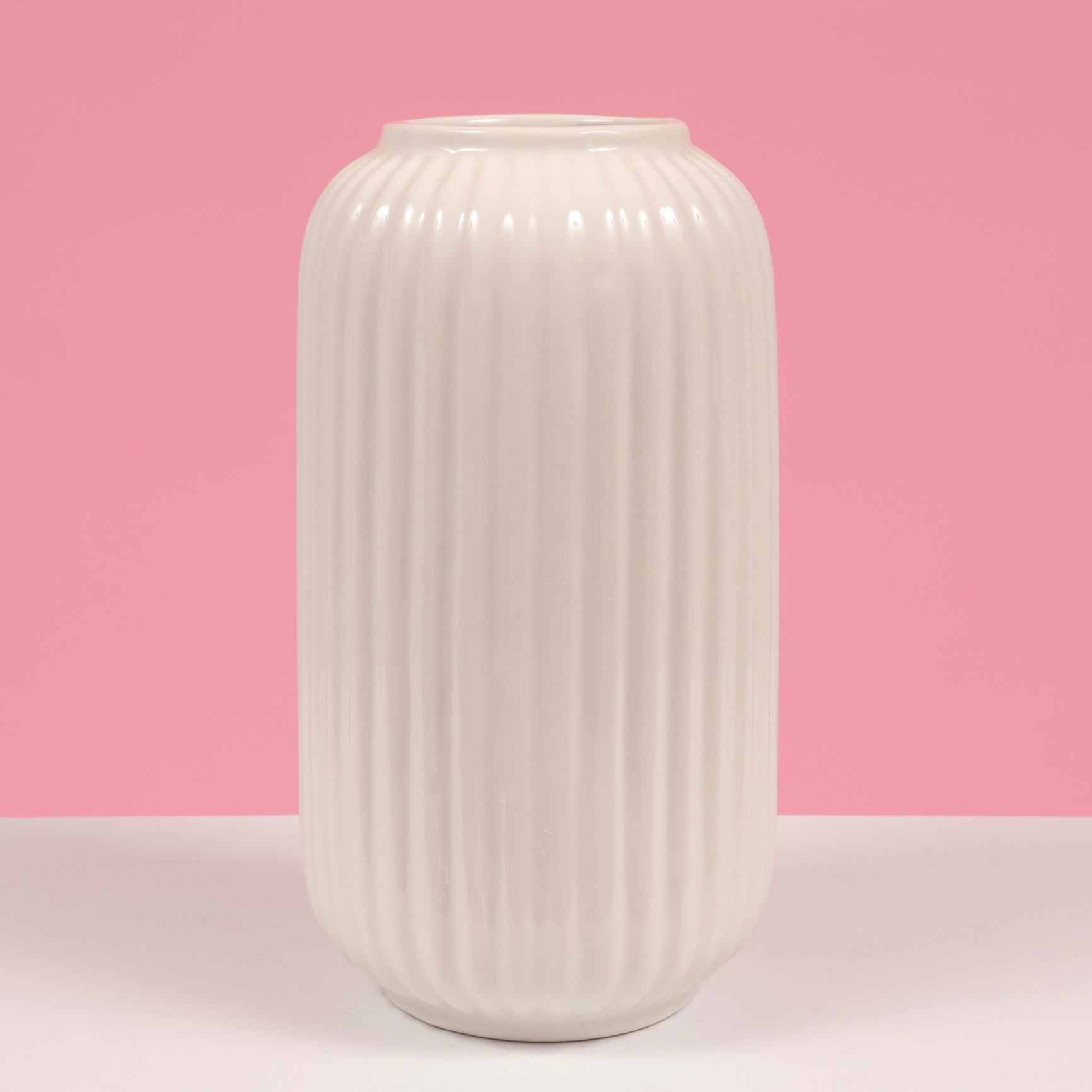 Ribbed Ceramic Centrepiece Vase - White (11x21.5cm)