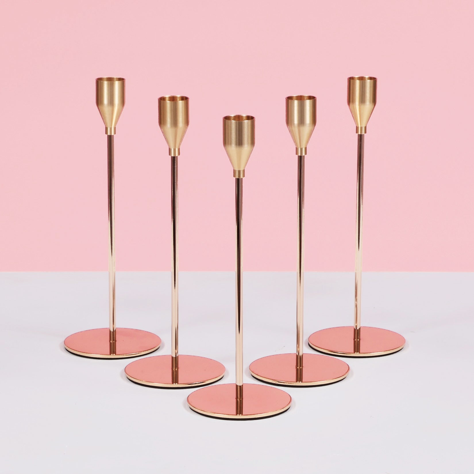 Create a warm, romantic ambiance with these Gold Taper Candle Holders - an essential styling piece for weddings, receptions and special events. Featuring sleek lines and a timeless gold finish, these holders bring sophistication and height to your table settings, ceremony backdrops, or entrance displays.