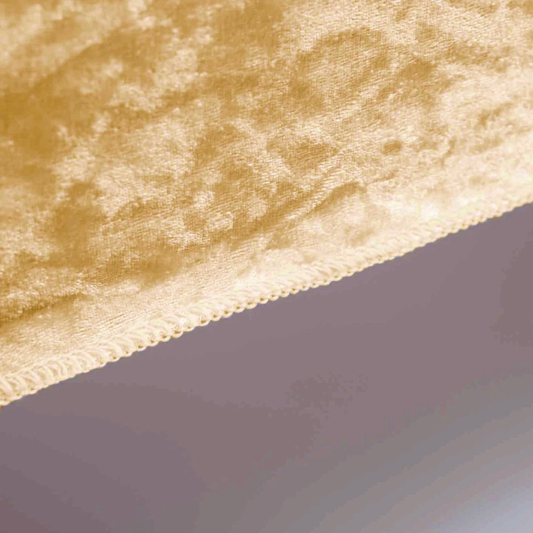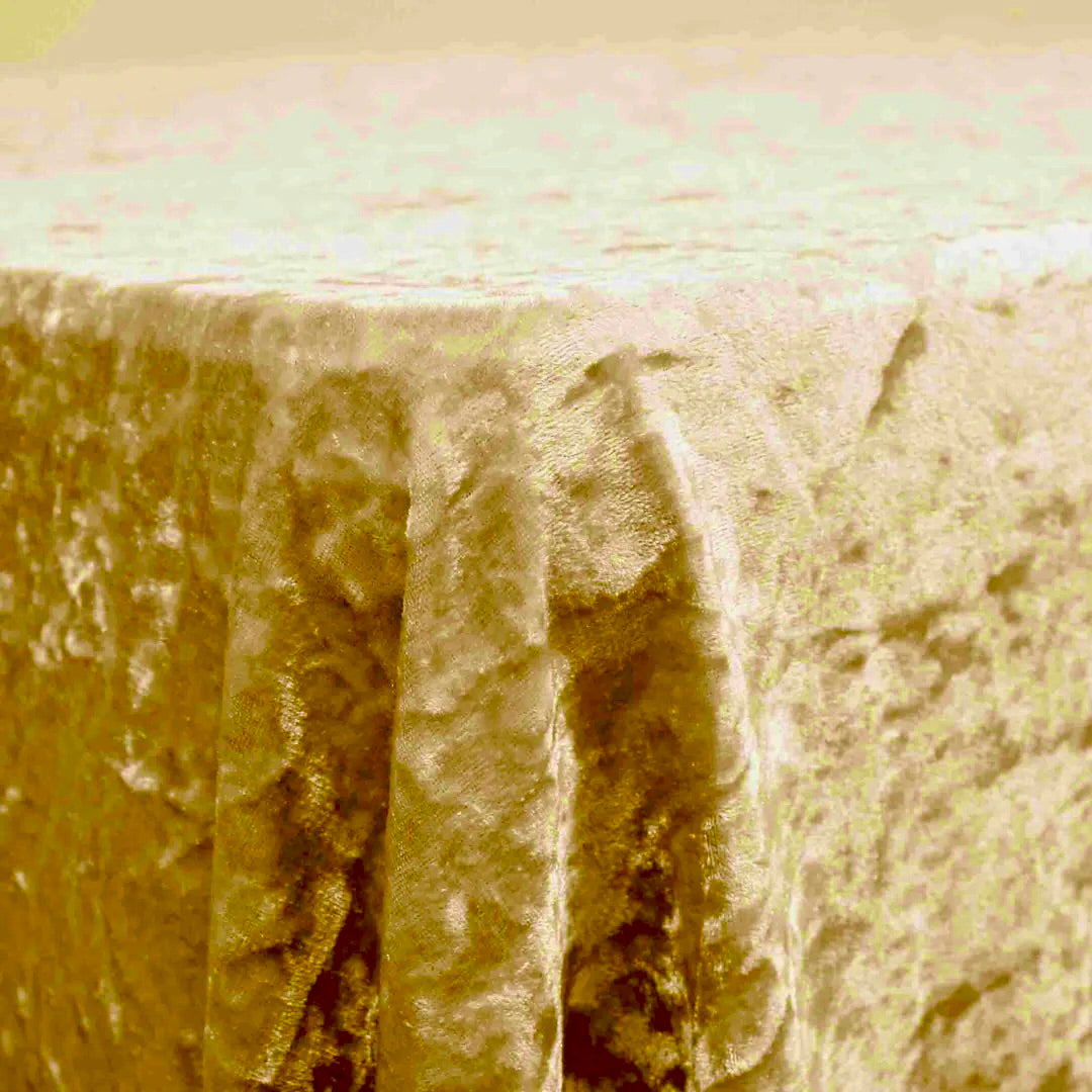 Our 153x259cm Gold Crushed Velvet Tablecloths will add a luxurious and romantic vibe to any wedding or event. Designed specifically for the wedding and events industry these velvet tablecloths are popular for weddings, trade shows, DJ tables, birthday parties and market stalls. Modern manufacturing has made this timeless fabric of royalty accessible to all! With several on-trend colours to choose from, they suit a variety of table sizes (see below) and are seamlessly stitched with a piece of whole fabric:
