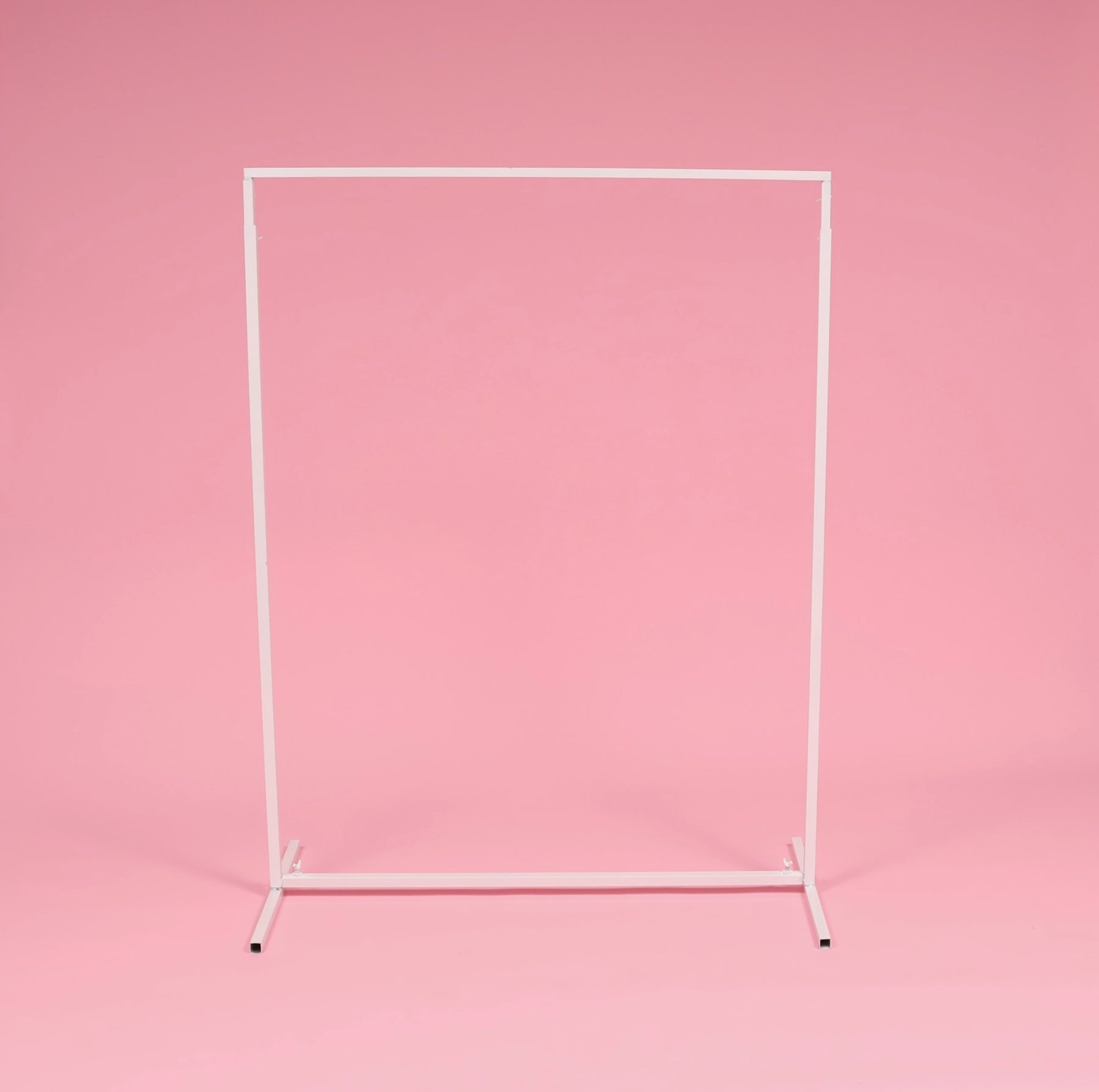 Design: This freestanding height-adjustable Frame is so versatile and great for creating stunning displays for Weddings and Events. The frame is 1m wide and height adjustable from 130cm to 230cm. The free standing nature means it's great for hanging displays, wedding and event signage, drapery, flower and greenery garlands, and so much more!