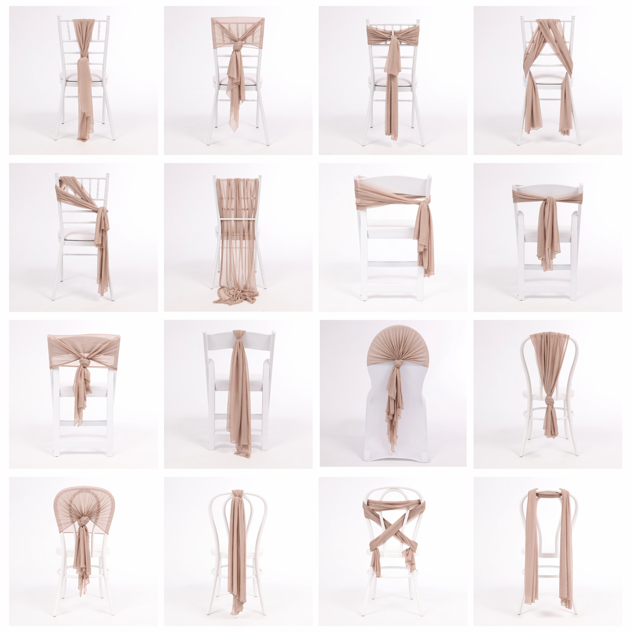 Perfect for a wide range of applications, these versatile pieces can be used as elegant chair sashes, table runners, plinth covers or draped styling accents. Whether tied, layered, gathered or left flowing, they add texture and dimension to any event setting.